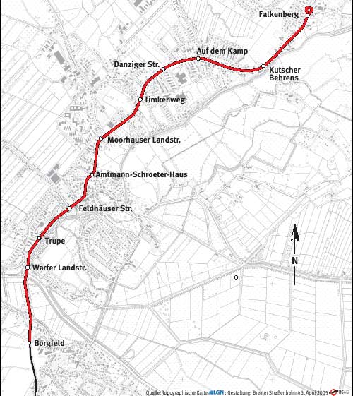 | ca. 1990 | Die Gemeinde Lilienthal beauftragt die BSAG mit der Durchführung von Planungen zur Verlängerung der Linie 4 nach Falkenberg. In Bremen wurde der Bau der Linie 4 gerade beschlossen. |